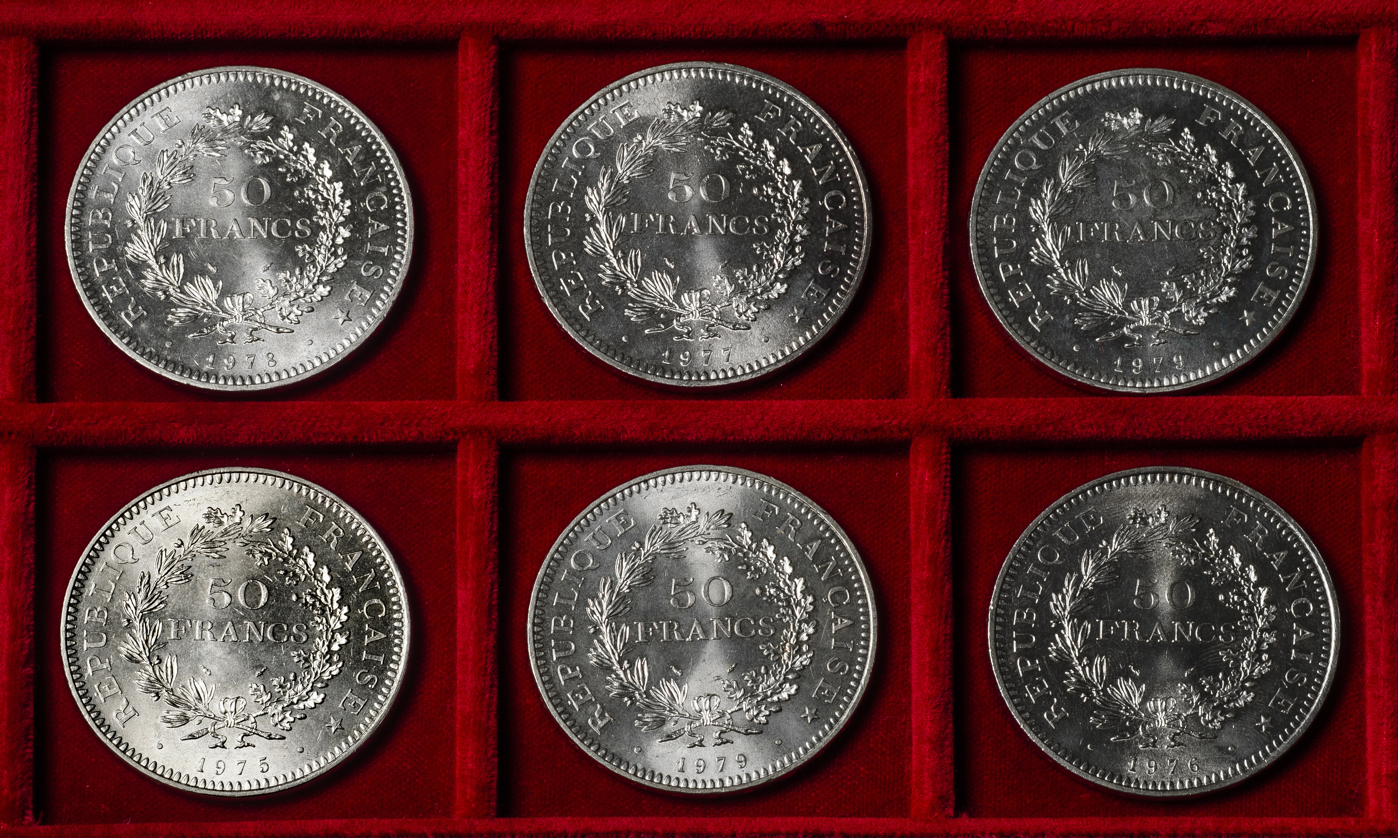 Francia. Lote de 6 monedas de 50 francs. Ag. 180,01 g. 0,900 milésimas. Es imprescindible un riguroso examen. NO SE ADMITE DEVOLUCIÓN. EBC/SC. Est...300,00.