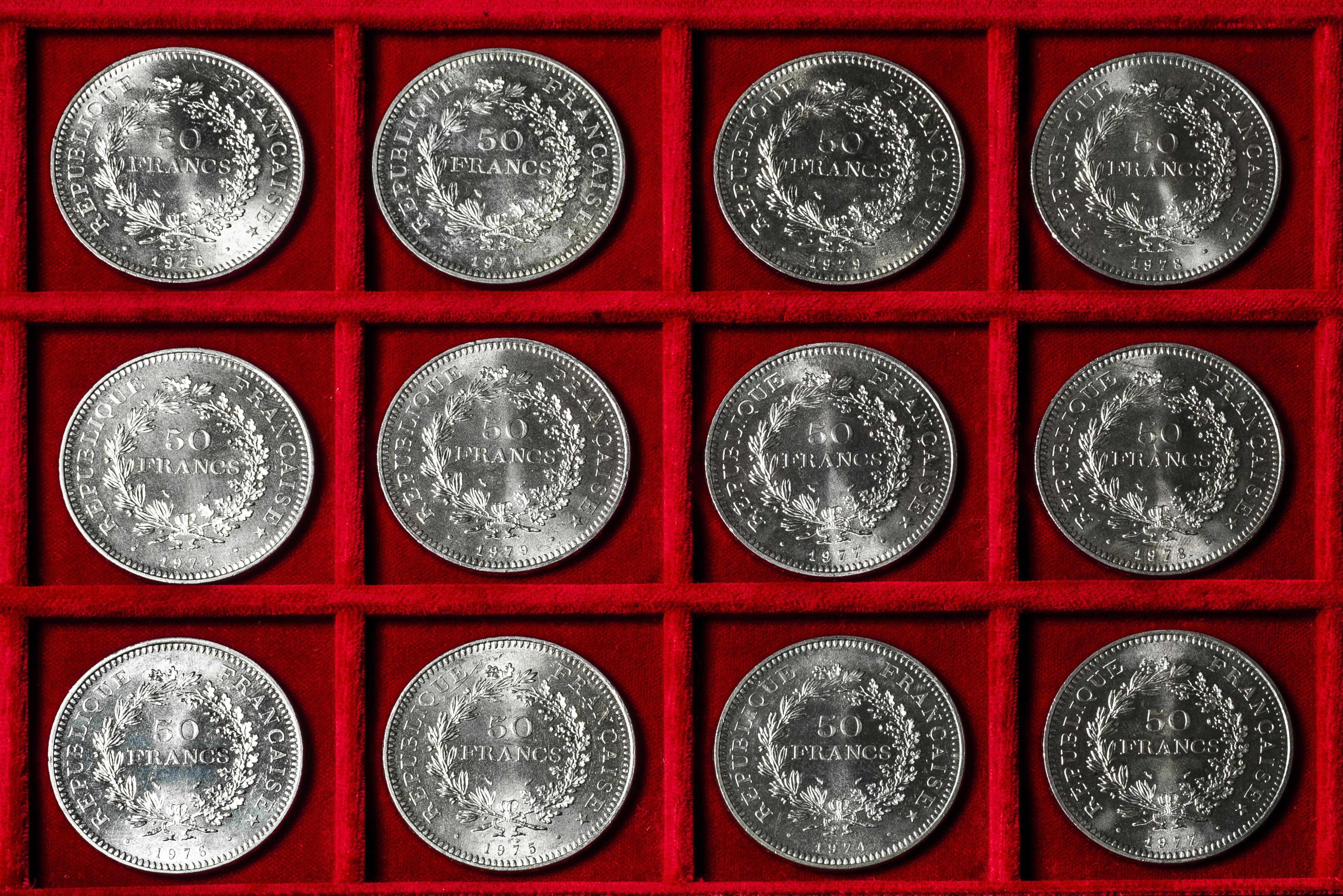 Francia. Lote de 12 monedas de 50 francs. Ag. 359,87 g. 0,900 milésimas. Es imprescindible un riguroso examen. NO SE ADMITE DEVOLUCIÓN. EBC/SC. Est...600,00.