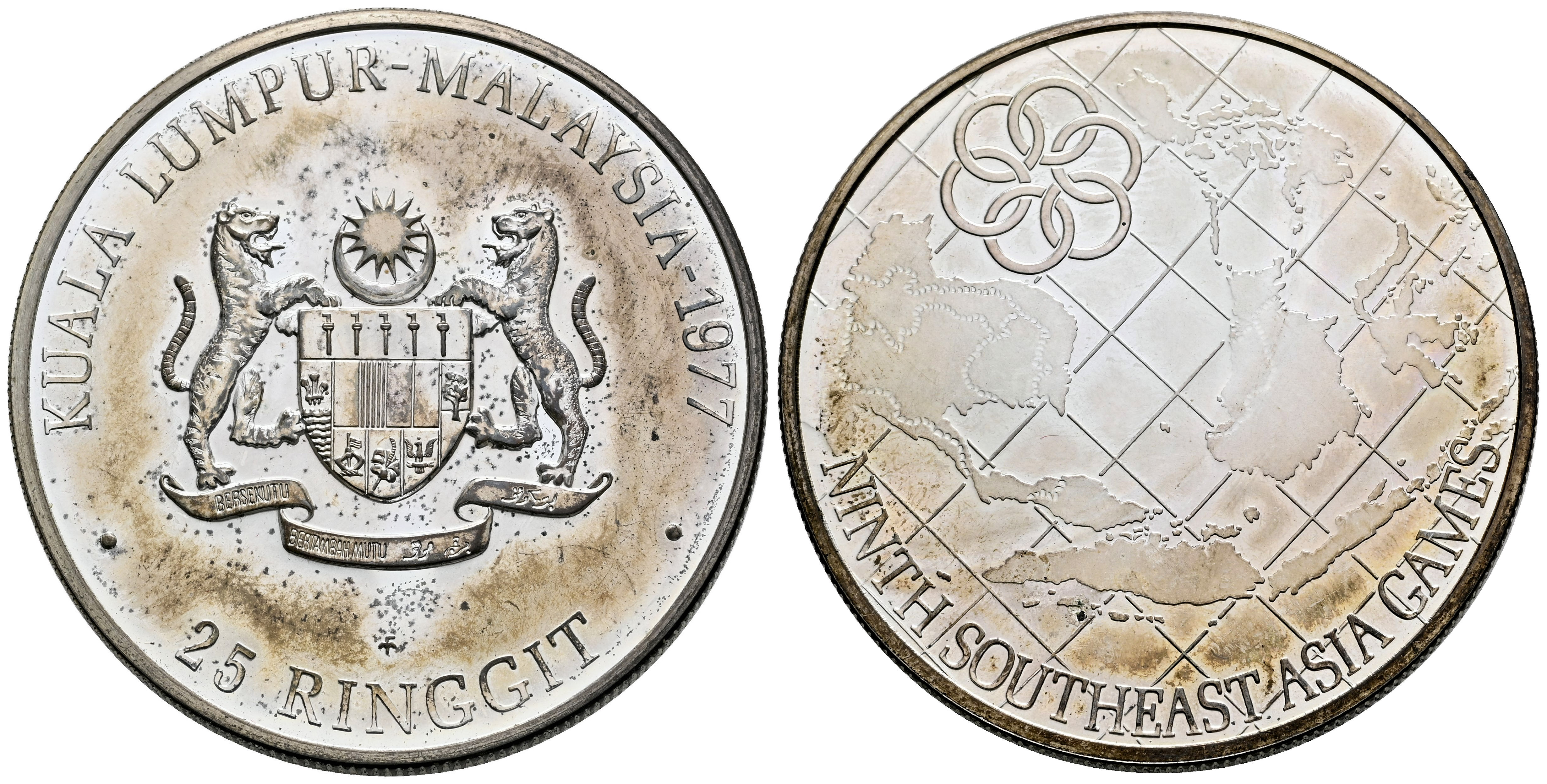 Malasia. 25 ringgit. 1977. (Km-23). Ag. 35,00 g. Suave tono. PROOF. Est...50,00.