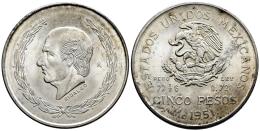 México. 5 pesos. 1951. México. (Km-467). Ag. 27,79 g. Brillo original. EBC/EBC+. Est...50,00.