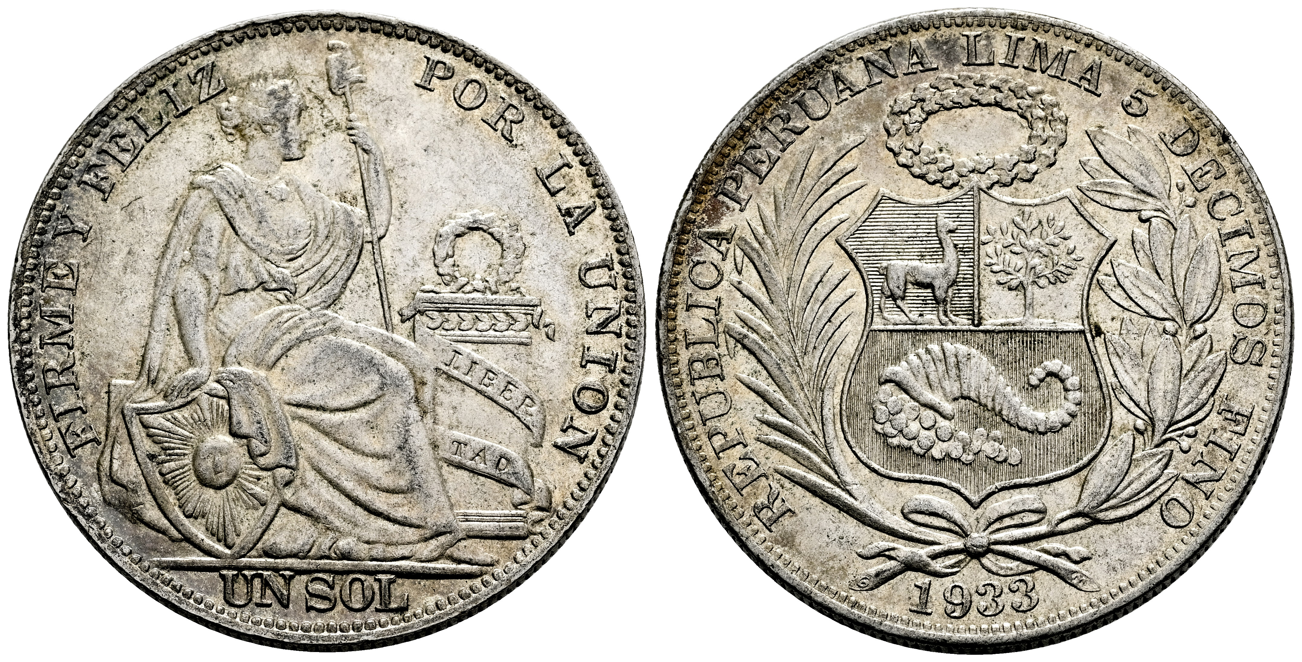 Perú. 1 sol. 1933. Lima. (Km-218.2). Ag. 25,30 g. EBC-. Est...50,00.