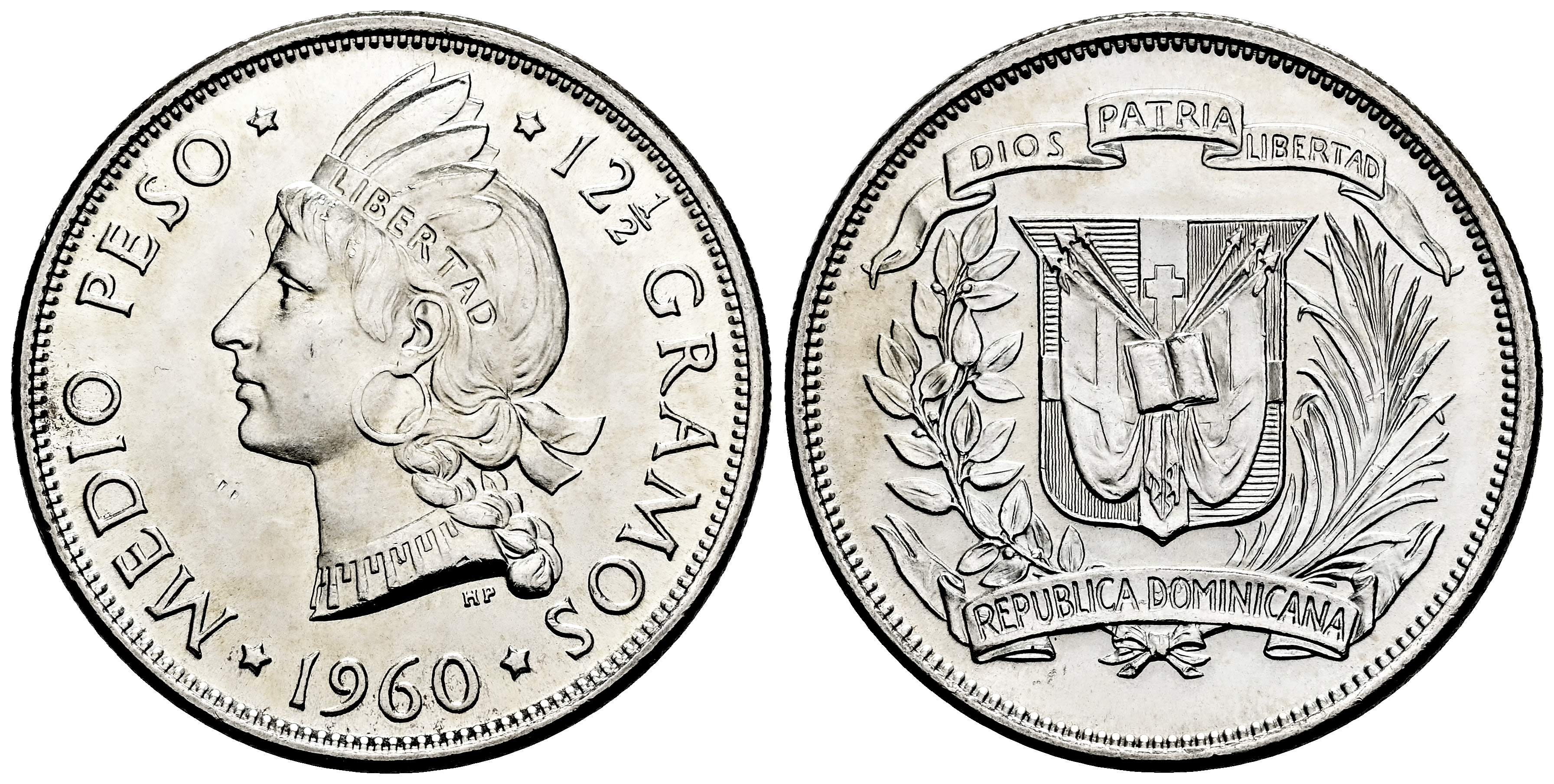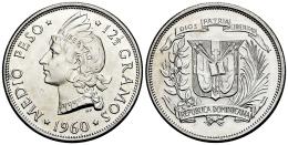 República Dominicana. 1/2 peso. 1960. Philadelphia. (Km-21). Ag. 12,30 g. Pleno brillo original. SC-. Est...50,00.