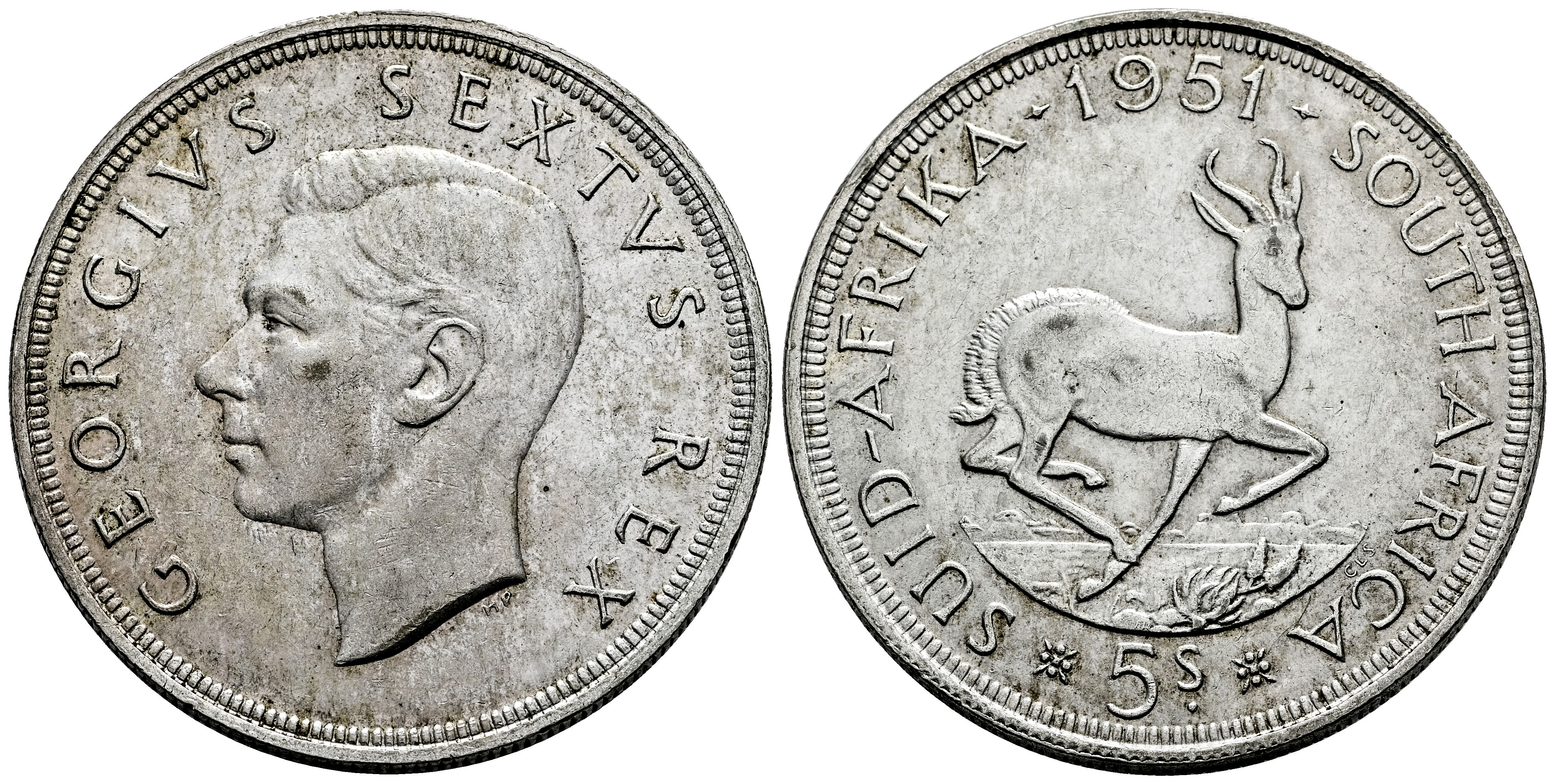 Sudáfrica. George VI. 5 schillings. 1951. (Km-40.01). Ag. 28,21 g. Restos de brillo original. SC-. Est...50,00.