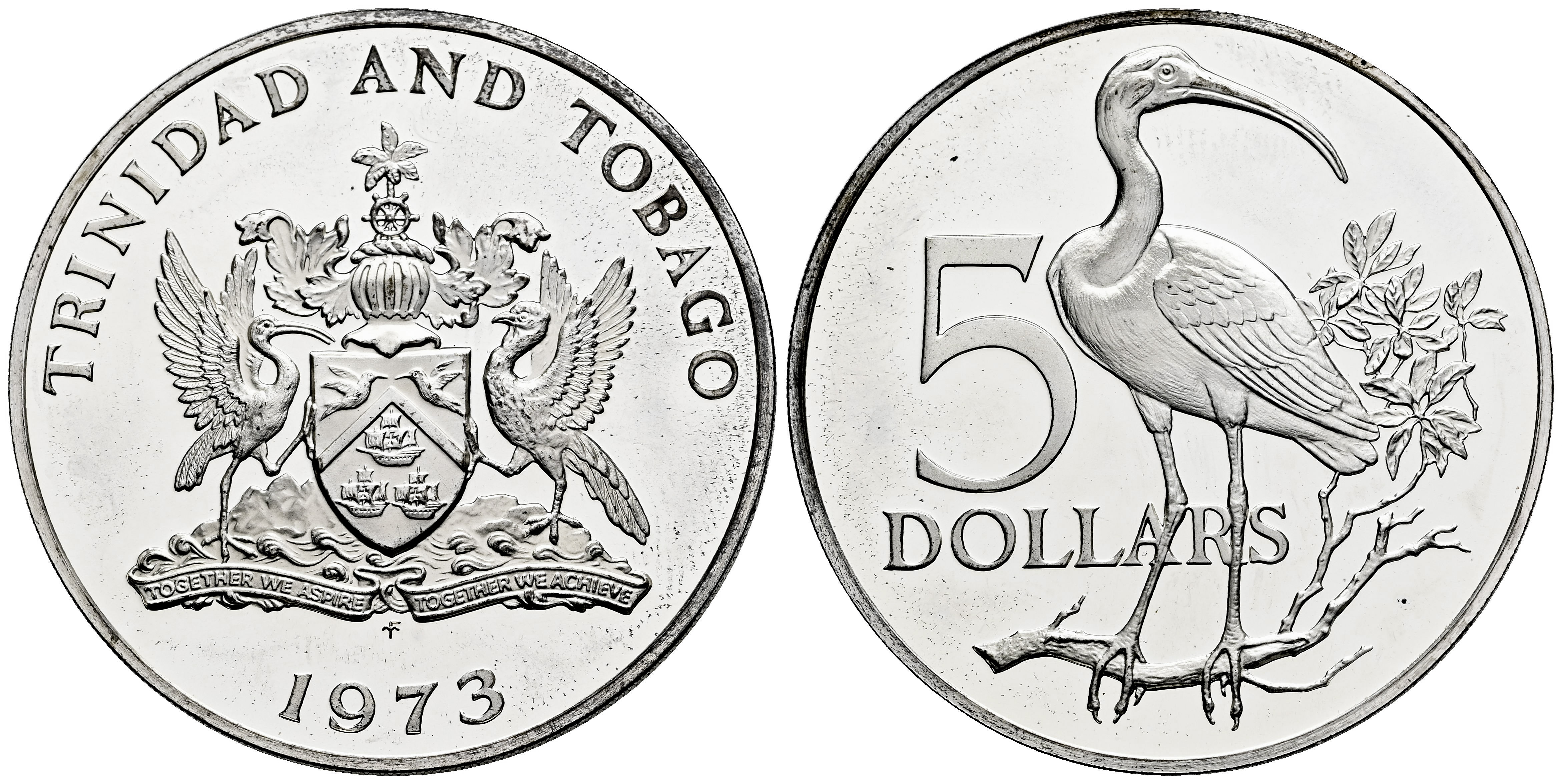 Trinidad y Tobago. 5 dollars. 1973. (Km-8). Ag. 29,94 g. PROOF. Est...40,00.