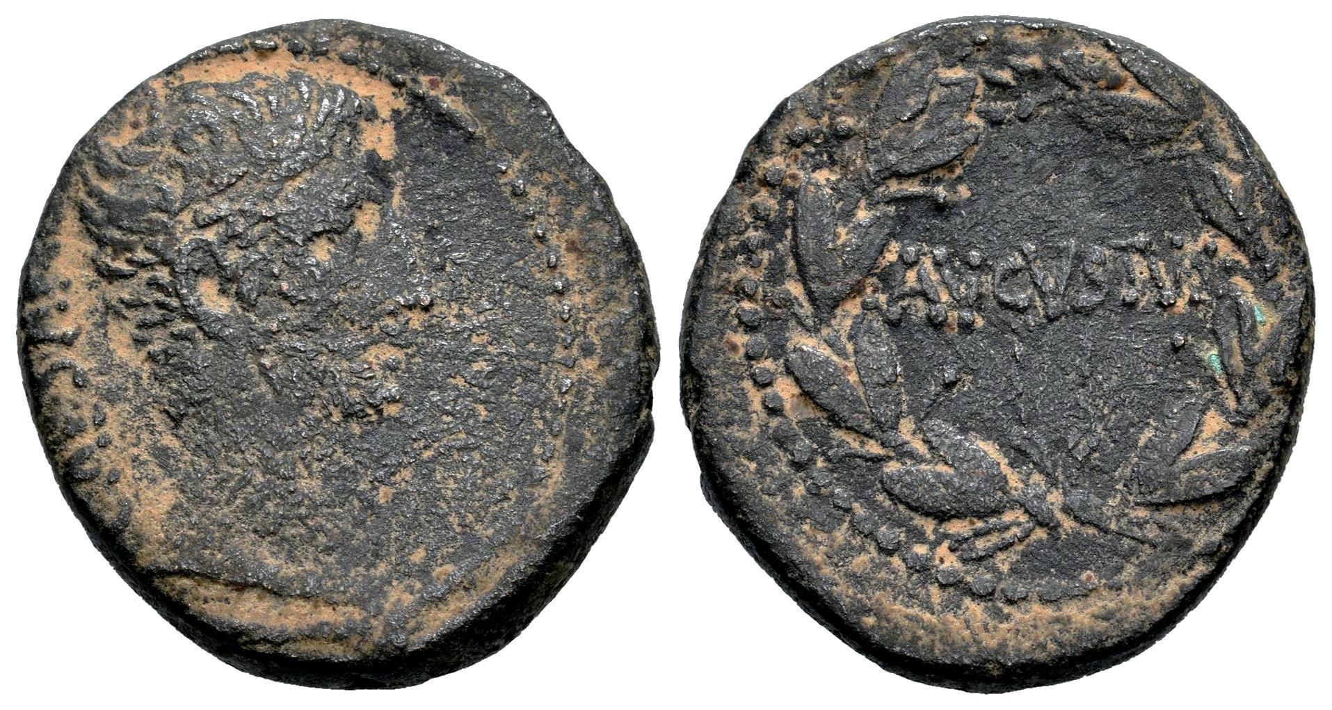 Augusto. Seleucis y Pieria. AE 25. 27 a.C.-14 d.C. Antioquía. (RPC-4100). (McAlee-190). Anv.: Cabeza desnuda de Augusto a derecha, detrás: CAESAR. Rev.: AVGVSTVS dentro de corona de laurel. Ae. 9,28 g. BC+. Est...45,00.