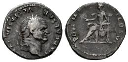 Vespasiano. Denario. 75 d.C. Roma. (Ric-II 1 772). (Bmcre-161). (Rsc-366). Anv.: IMP CAESAR VESPASIANVS AVG. Cabeza laureada a la derecha. Rev.: PON MAX TR P COS VI. Pax sedente a la izquierda, sosteniendo una rama. Ag. 3,34 g. Pátina. Ex Tauler&Fau 146 (09/07/2024), lote 97. MBC-. Est...100,00.