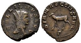 Galieno. Antoniniano. 267-268 d.C. Roma. (Ric-V 1 181). (MIR-716b1). (Rsc-165). Anv.: GALLIENVS AVG. Cabeza radiada a la derecha. Rev.: DIANAE CONS AVG. Antílope avanzando hacia la izquierda; Γ en exergo. Ve. 3,24 g. MBC-/MBC. Est...25,00.