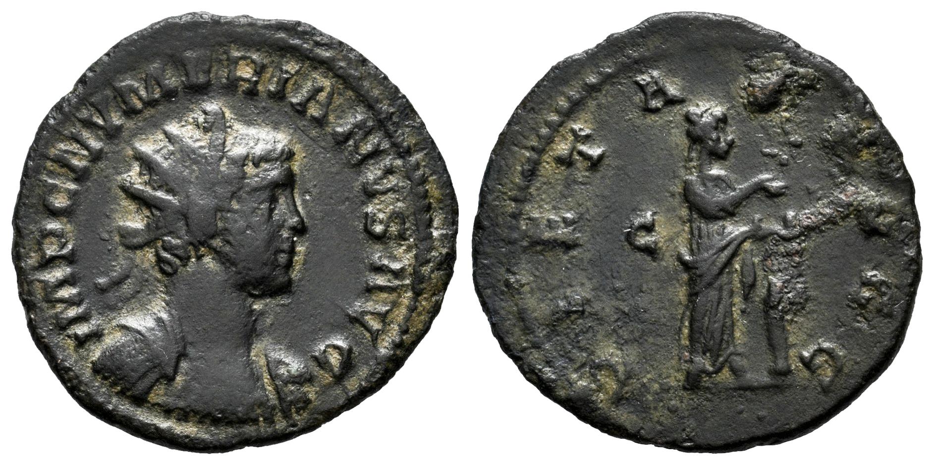 Numeriano. Antoniniano. 283 d.C. Roma. (Ric-V.2-397). Anv.: IMP NVMERIANVS AVG, busto radiado y con coraza a derecha. Rev.: PIETAS AVGG. Pietas de pie a derecha, levantando la mano y sosteniendo un globo terráqueo sobre el altar; C en el campo izquierdo. Ve. 3,13 g. MBC. Est...45,00.