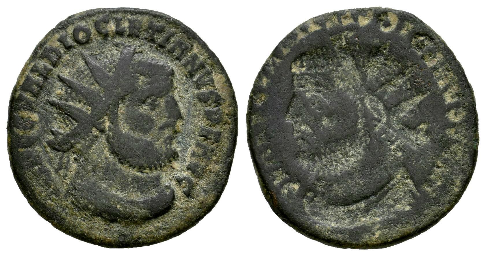 Diocleciano. Antoniniano incuso. 297-298 d.C. Anv.: IMP C C VAL DIOCLETIANVS PF AVG. Busto radiado y drapeado a la derecha. Rev.: Incuso de anverso. Ae. 3,26 g. Rara. Ex Tauler&Fau 146 (09/07/2024), lote 212. MBC-/MBC. Est...100,00.