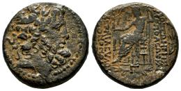 Seleucis y Pieria. Tetrachalkon. S. I a.C. Antioquía. (RPC-I 4226). (McAlee-60). Anv.: Cabeza laureada de Zeus a derecha. Rev.:  Zeus Nikephoros sentado a la izquierda, sosteniendo a Nike y un cetro largo. Ae. MBC/MBC-. Est...60,00.