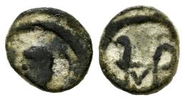 Nummus. Segunda mitad del siglo VII. Emérita (Mérida). (Crusafont-Grupo D, Tipo 37 var. izq.). Anv.: Busto a izquierda. Rev.: Monograma formado por una M con lazos en las puntas. Ae. 1,21 g. Est...100,00.