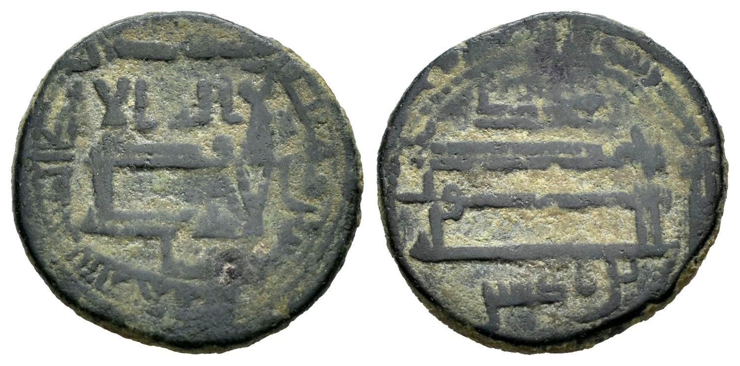 Idrisíes. Alí Ibn Muhammad. Felús. ¿223 H?. (El Felús Magrebí-67). Ae. 2,60 g. Citando `Alí en anverso y Ibn Idris en reverso. Escasa. MBC. Est...80,00.