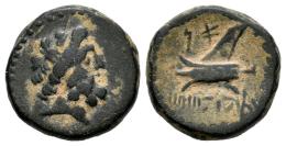 Phoenicia. Arados. AE 16. 185-139 a.C. (BMC Phoenicia-104). Anv.: Cabeza laureada de Zeus a derecha. Rev.: Ariete de tres puntas de galera a la izquierda. Ae. 3,96 g. MBC-/MBC. Est...50,00.