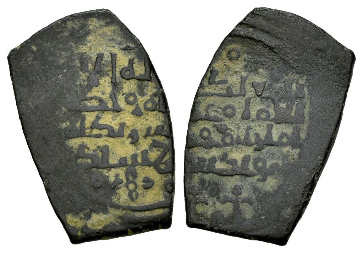 Reinos de Taifas. Muhammad Ibn Abbad, Al-Mutamid (Abbadies). Fracción de Dirham. (470 H). Madinat Ishbiliya (Sevilla). Taifa de Sevilla. (Prieto y Vives-412k). Ve. 1,34 g. MBC-. Est...30,00.