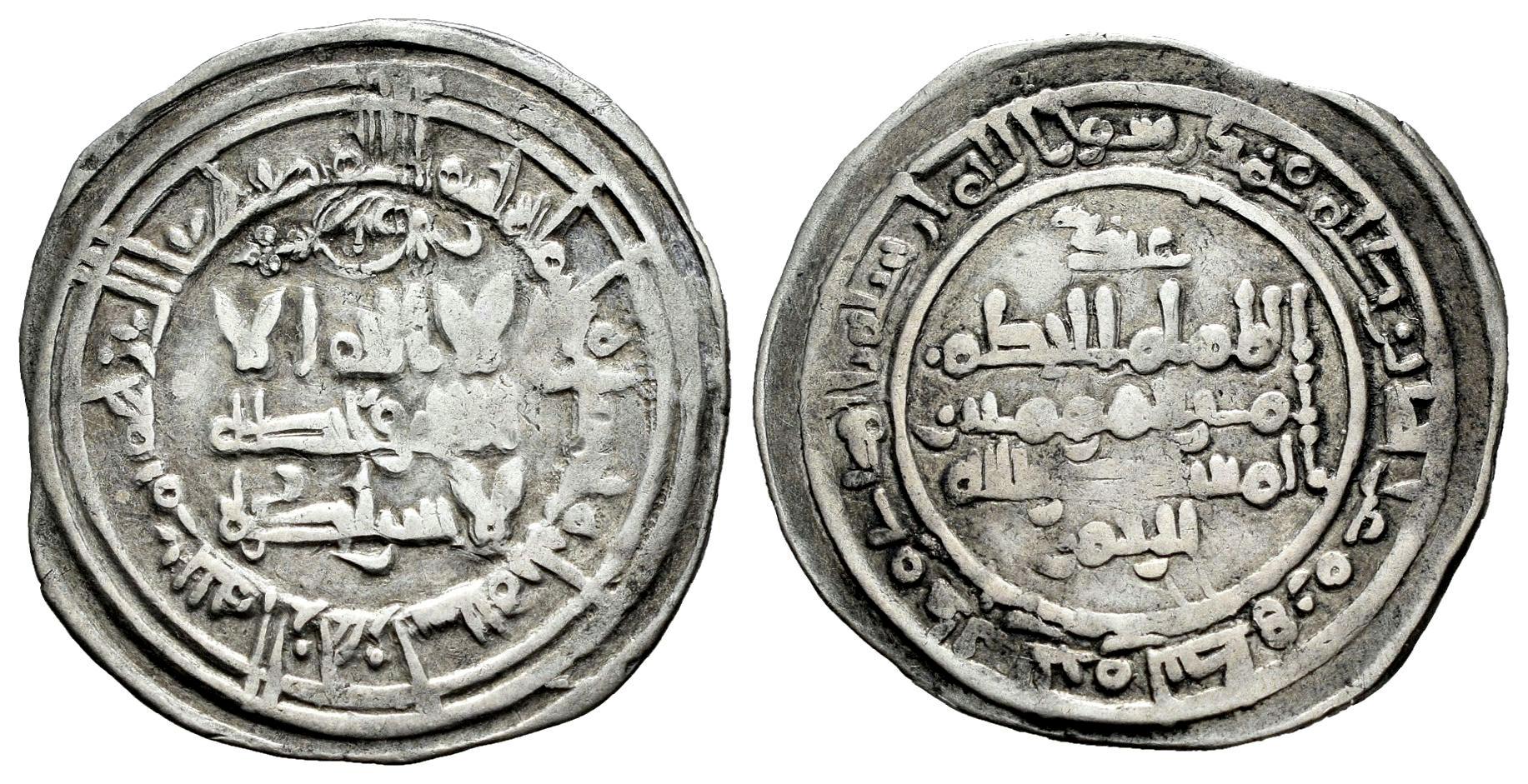 Califato de Córdoba. Al-Hakam II. Dirham. 353 H. Madinat al-Zahra. (Vives-451). Ag. 2,84 g. Citando a `Abd / Al-Rahman en IIA. MBC. Est...40,00.