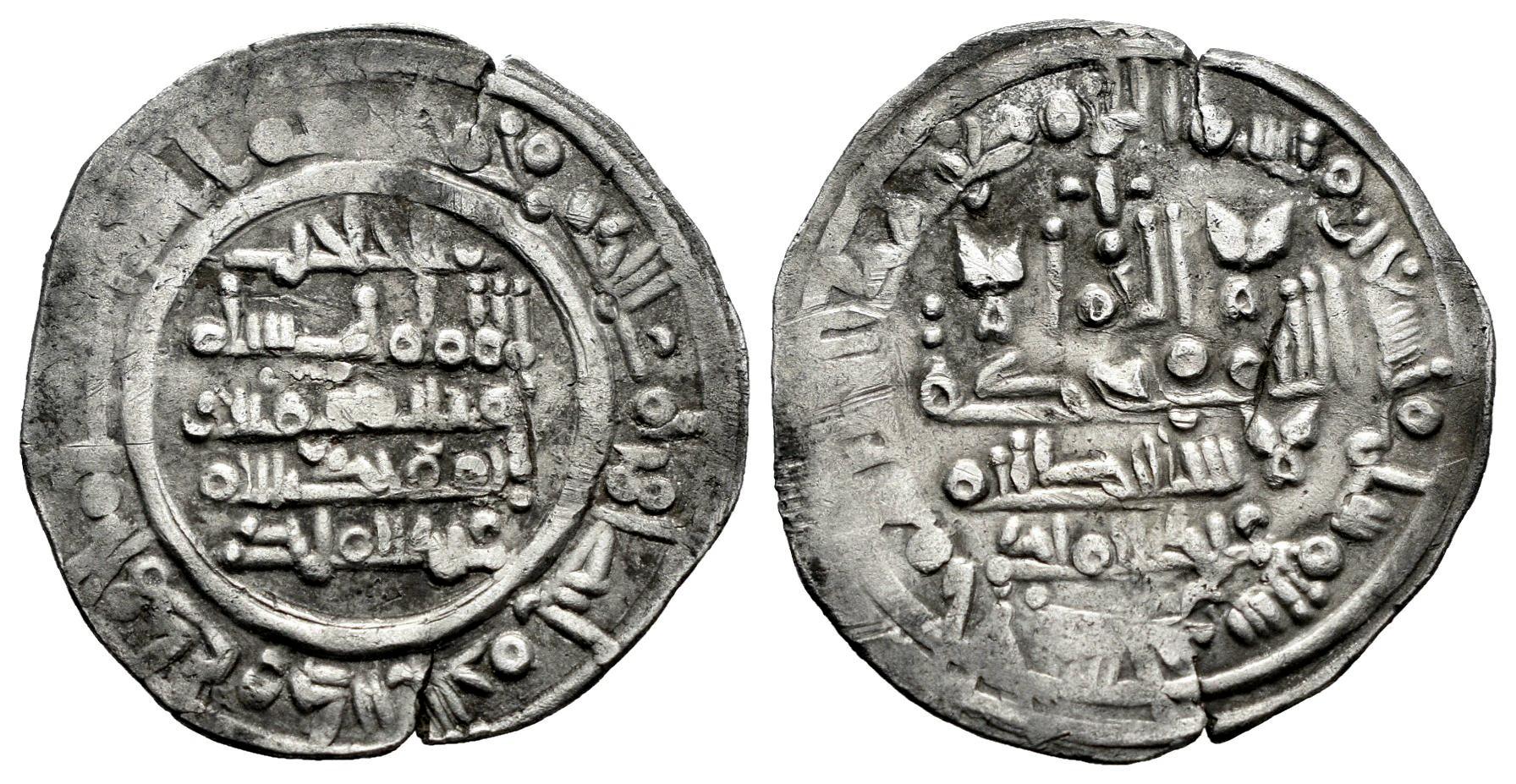Califato de Córdoba. Hisham II. Dirham. 396 H. Al-Andalus. (Vives-583). Ag. 2,11 g. Citando a ´Abd Al-Malik en IA y Al-Hayib / ´Abd Al-Malik en IIA. Leve grieta. MBC. Est...40,00.