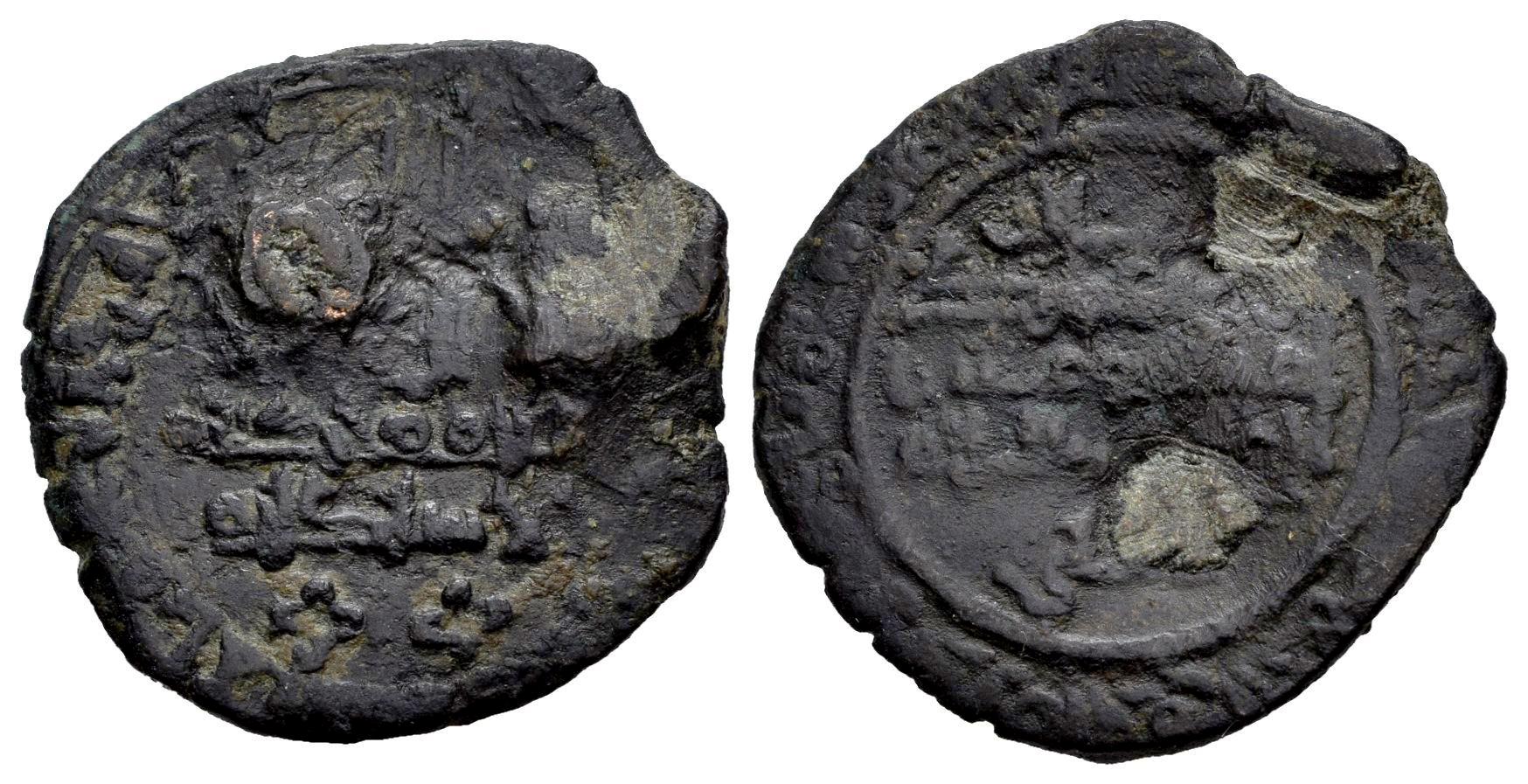 Califato Hammudí. Muhammad Ibn Idris, Al-Mahdi. Dirham. 443 H. Al-Andalus. Taifa de Málaga. (Vives-864). (Prieto-104e). Ae. 3,28 g. Agujeros tapados. BC+. Est...25,00.