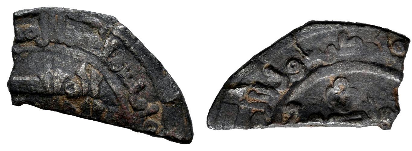 Reinos de Taifas. Abd Al-Aziz Al-Mansur (Amiríes). Fracción de Dirham. 412-452 H. Taifa de Valencia. (Vives-1050). (Prieto & Vives-150). Ve. 0,75 g. La moneda Handusí nº 89, mismo ejemplar. Escasa. BC+. Est...30,00.