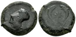 Sicilia. Dionysios I. AE 31. 395-367 a.C. Siracusa. (Calciati-62). (Sng Ans-455). (Sng Cop-720). Anv.: Cabeza de Athena a izquierda. Rev.: Dos delfines enfretados, entre ellos una estrella. Ag. 33,23 g. BC. Est...35,00.
