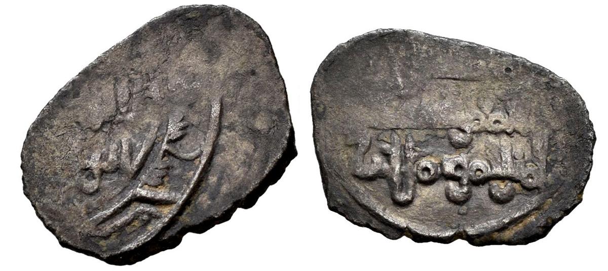 Reinos de Taifas. Abd Al-Aziz Al-Mansur (Amiríes). Fracción de Dirham. 412-452 H. Al-Andalus. Taifa de Valencia. (Prieto & Vives-150). Ve. 0,55 g. La moneda Handusí nº 79, mismo ejemplar. Rara. BC-/BC+. Est...50,00.