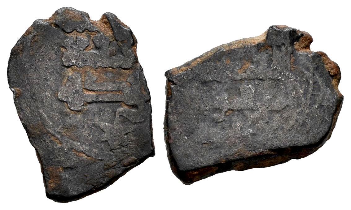Reinos de Taifas. Abd Al-Malik, Al Muzaffar (Amiríes). Fracción de Dirham. 452-457 H. Taifa de Valencia. (Vives-1075). Ve. 1,75 g. La moneda Handusí nº 109, mismo ejemplar. Rara. BC/BC-. Est...40,00.