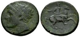 Sicilia. Siracusa. AE 21. 230-215 a.C. Tiempos de Hieron II. (CNS-II 195). (Hgc-2, 1548). (Tesorillo-Sicilia 10, mismo ejemplar). Anv.: Cabeza con diadema a la izquierda. Rev.: Guerrero sosteniendo una lanza en posición vertical, a caballo encabritado a la derecha; monograma AP debajo, IEPΩNOΣ en el exergo. Ae. 14,26 g. Ex Colección Tesorillo Vol. I, Tauler&Fau 152 (17/12/2024), lote 156. Est...50,00.