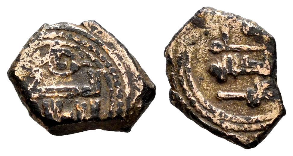 Reinos de Taifas. Abd Al-Malik, Al Muzaffar (Amiríes). Fracción de Dinar. 452-457 H. Taifa de Valencia. (F. Vañó-104). (Vives-1078). Ae. 0,91 g. Acuñada en cobre con un baño de oro. Rara. BC+. Est...50,00.