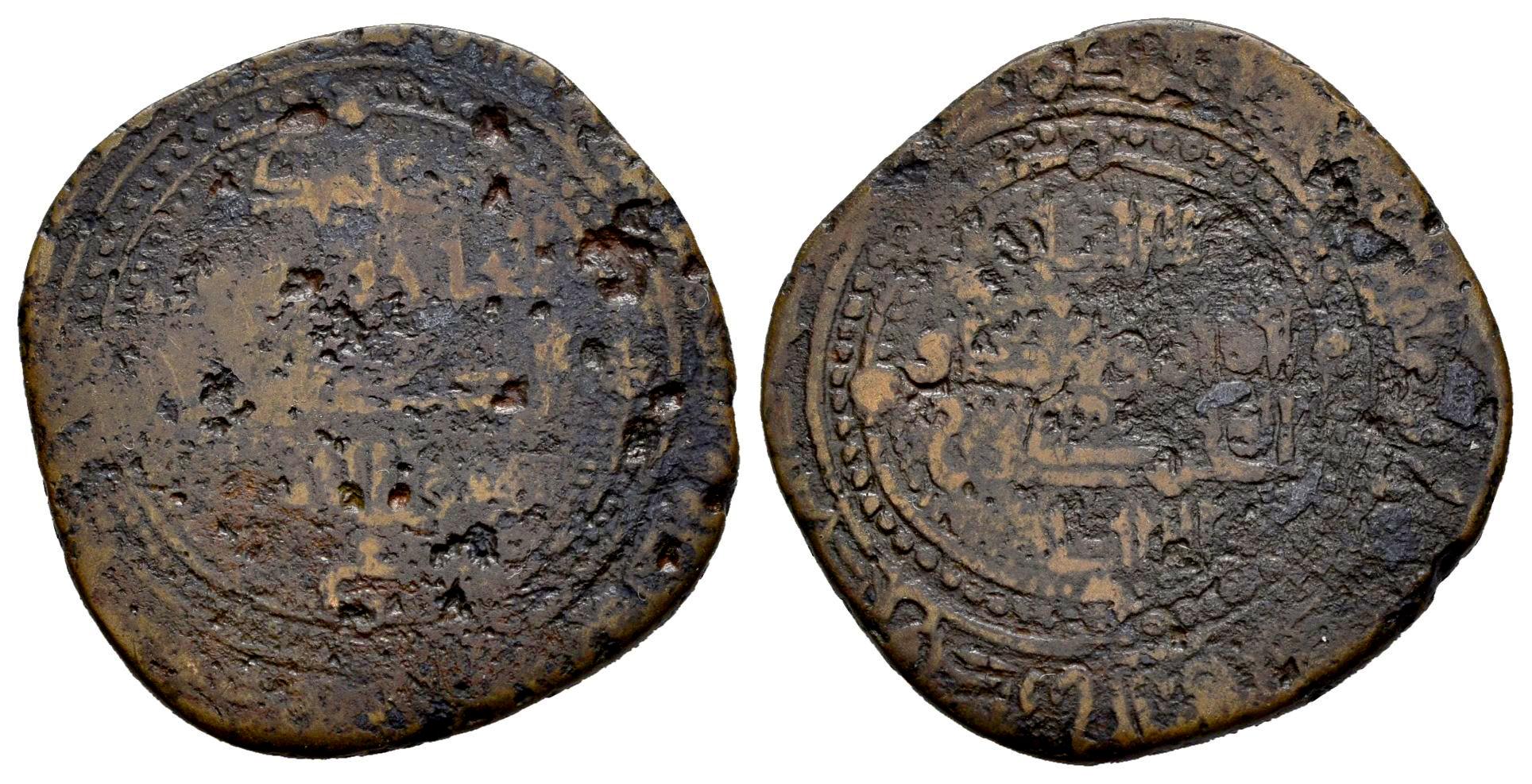 Reinos de Taifas. Yahya Al-Ma´mun (Dun-Nunids). Dirham. ¿468 H?. Madinat Tulaytula (Toledo). Taifa de Toledo. (Vives-1114). (Prieto-338d). Ve. 4,97 g. Similar al tipo publicado en La moneda Handusí nº171. Rara. BC-. Est...50,00.