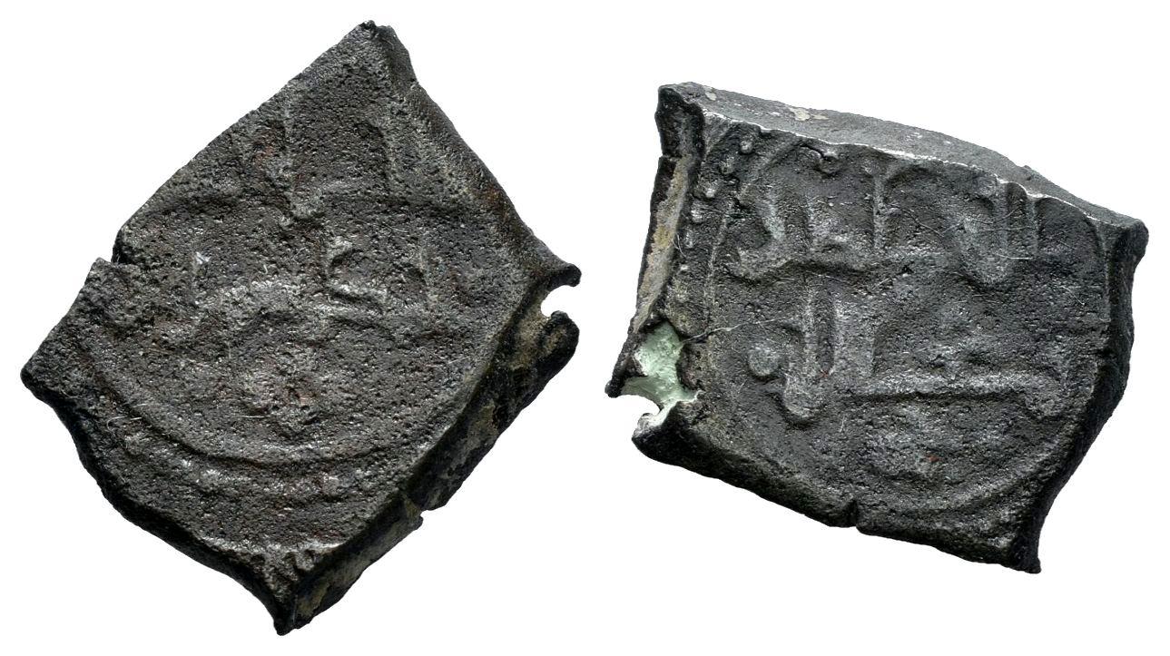 Reinos de Taifas. Yahya II Al-Qadir. Fracción de Dirham. 474-477 H. Madinat Kunka (Cuenca). Taifa de Toledo. (Vives-1121). (Prieto-343b). Ve. 2,25 g. BC-/BC+. Est...25,00.