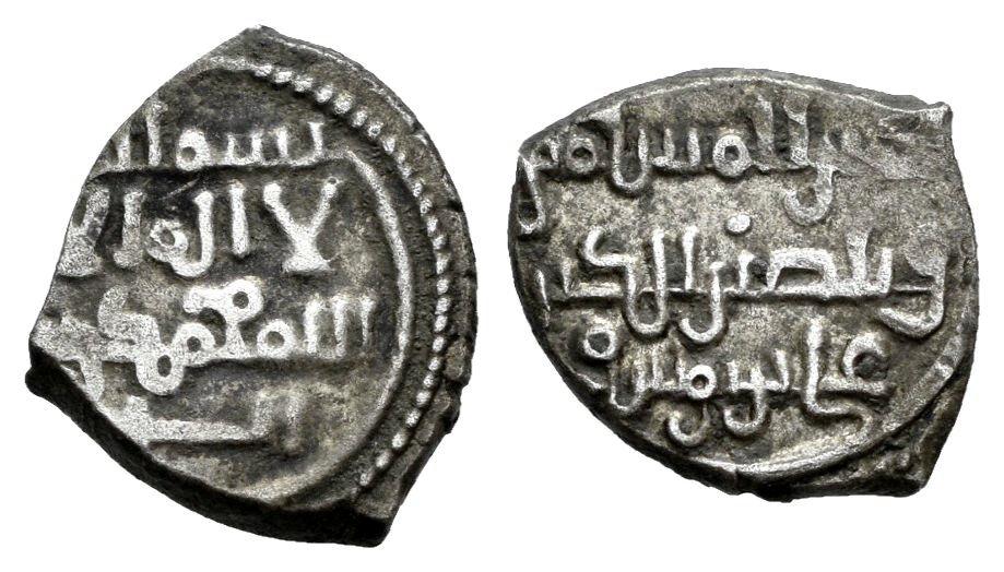 Almorávides. Alí Ibn Yusuf y el Emir Tashfin. Fracción de Dirham. 533-537 H. ¿Jaén?. Tipo Taifa. (Jarique-IV nº19). Ag. 0,90 g. La moneda Handusí nº 333 y Manquso nº10, pag. 25. Mismo ejemplar. Rara. MBC+. Est...80,00.