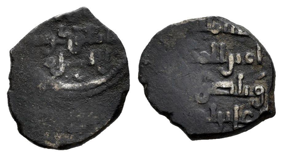 Almorávides. Alí Ibn Yusuf y el Emir Tashfin. Fracción de Dirham. 533-537 H. ¿Jaén?. Tipo Taifa. (Jarique-IV nº19). Ag. 0,55 g. La moneda Handusí nº 334, mismo ejemplar. Rara. BC/BC+. Est...50,00.