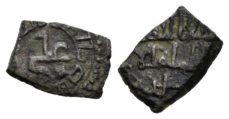 Almorávides. Alí Ibn Yusuf y el Emir Sïr. Fracción de Dirham. 534 H?. Gharnata (Granada)?. Ve. 0,58 g. Tipo Taifas. Muy rara. MBC. Est...60,00.
