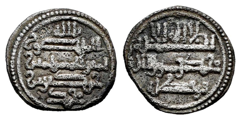 Taifas Almorávides. Hamdin ibn Muhammad. Quirate. 539-540 H. Qurtuba (Córdoba). (Fbm-M1). (Vives-1907). Ag. 0,92 g. Metal algo poroso. Escasa. MBC-. Est...50,00.