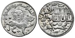 Selyúcidas de Rum. Ghiyath al-Din Kay Khusraw II. Dirham. 640 H = 1242/3 d.C. Qunya. 1º Reinado. (Izmirlier-406). (Broome-245 Dv(iii)b). Anv.: León avanzando hacia la derecha; personificación del sol arriba; debajo, dos crecientes; alrededor, leyenda con el nombre del Califa Abasí Al-Mustansir. Rev.: Leyenda con el nombre y título de Kay Khusraw II; en el margen exterior, fecha de ceca y AH. Ag. 2,99 g. Buen ejemplar. EBC. Est...80,00.
