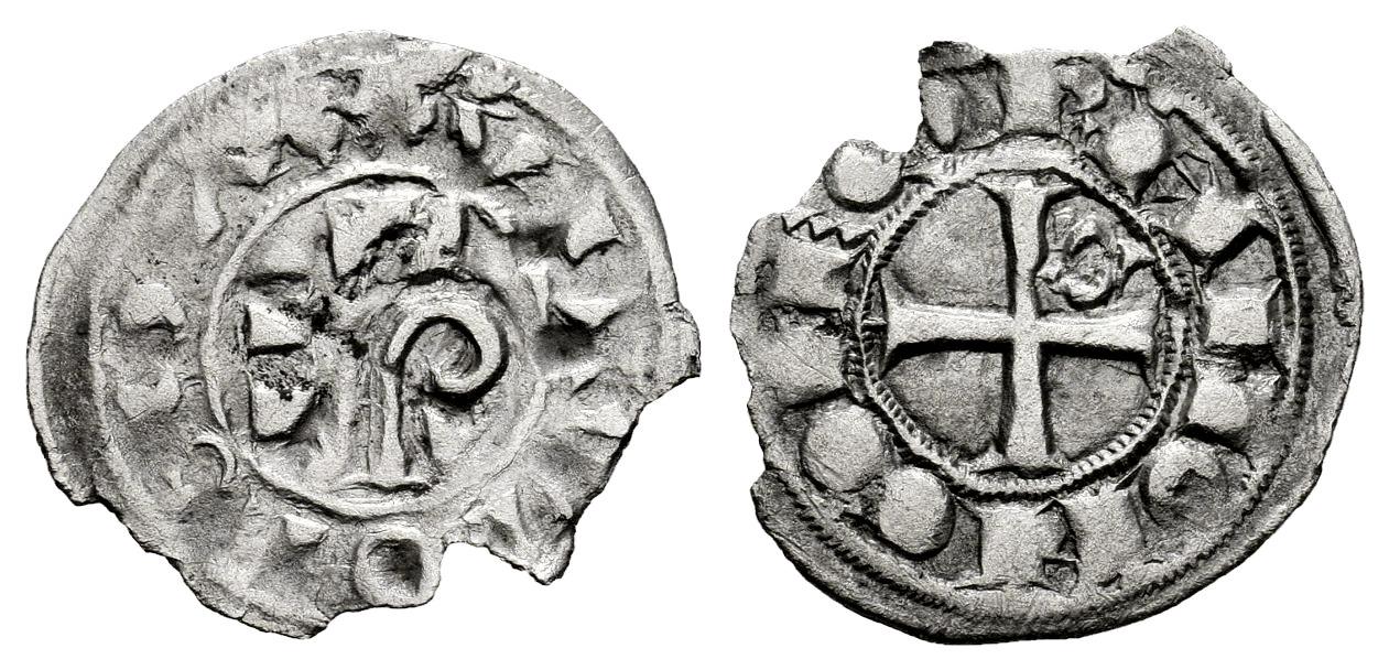 Condado de Tolosa. Ramón VI (1194-1222) y Ramón VII (1222-1249). Óbolo. (Cru OC-80). Ve. 0,37 g. Cospel faltado. MBC+. Est...35,00.