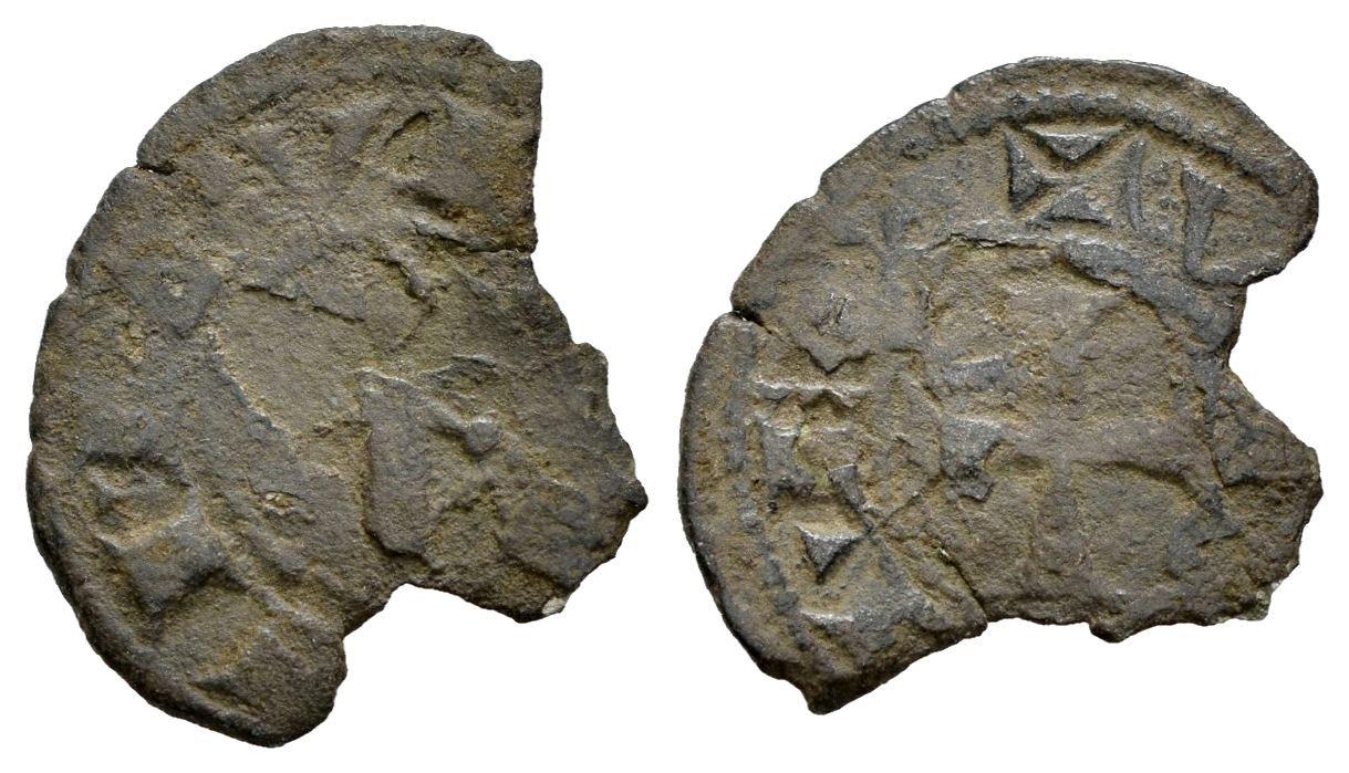 Condado de Ampurias. Hugo IV (1200-1230). Dinero. (Cru-97). Ve. 0,59 g. Cospel faltado. Rara. BC+. Est...75,00.