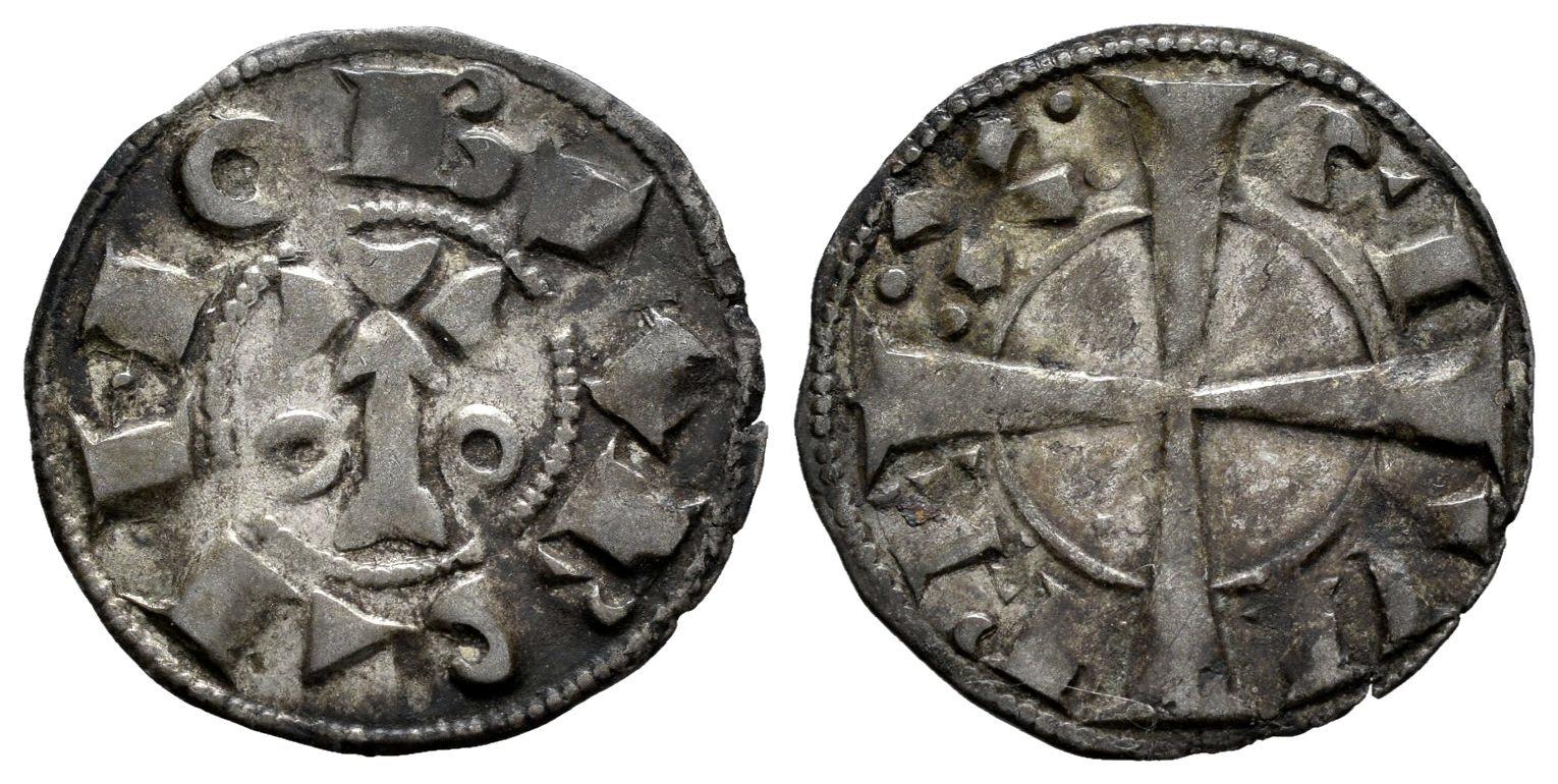 Corona de Aragón. Alfonso I (1162-1196). Dinero. Barcelona. (Cru C.G-2100). (Cru V.S-296). Ve. 0,95 g. MBC. Est...60,00.