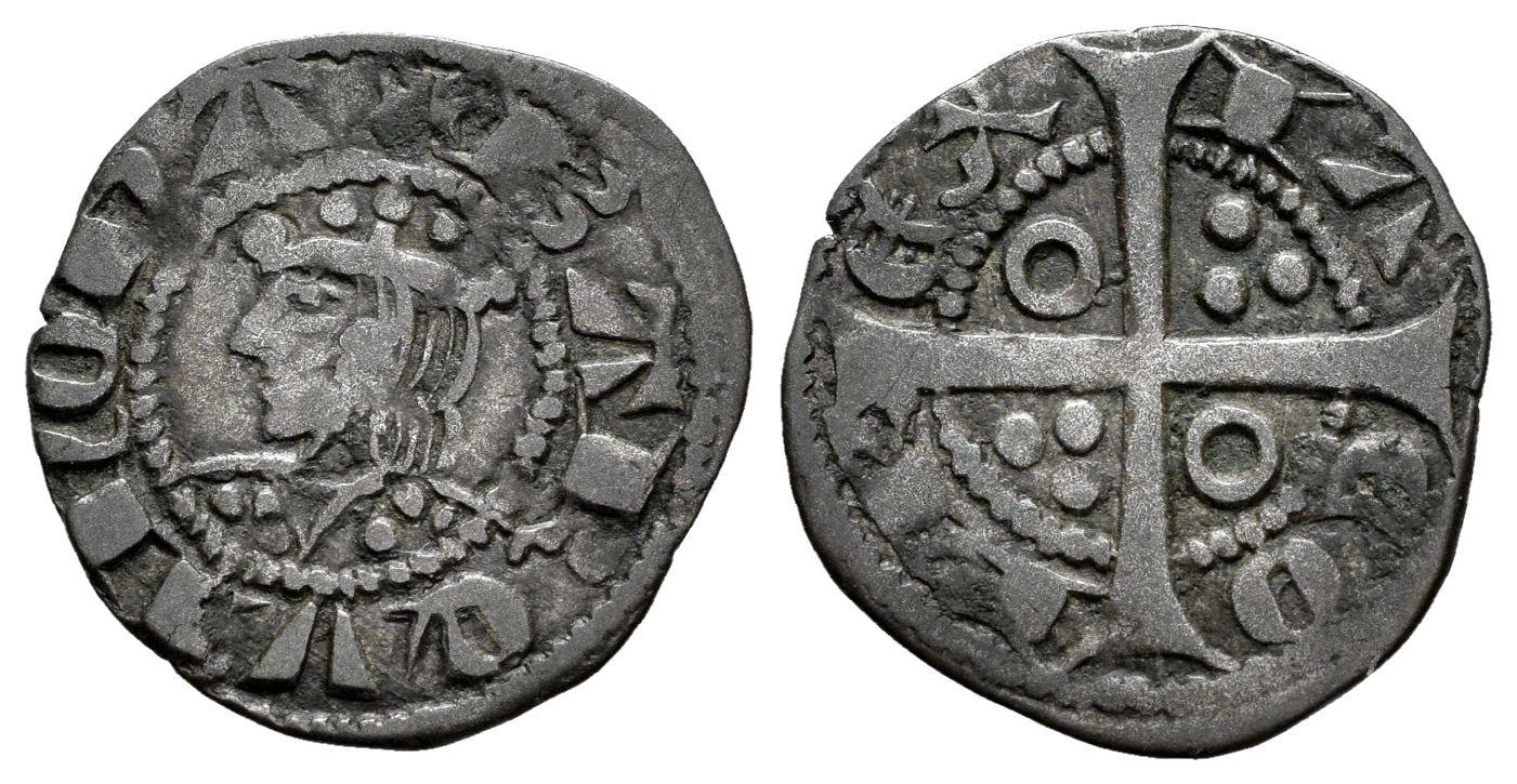 Corona de Aragón. Jaime II (1291-1327). Dinero. Barcelona. (Cru C.G-3159a). (Cru V.S-342.1). Ve. 1,11 g. MBC. Est...40,00.