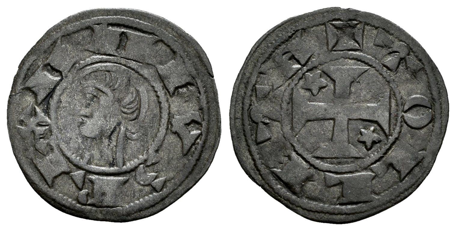 Reino de Castilla y León. Alfonso I (1109-1126). Dinero. Toledo. (Bautista-40). Anv.: ANFVS REX. Rev.: + TOLLETA. Ve. 0,81 g. Estrella en 1º y 4º cuartel. MBC. Est...40,00.