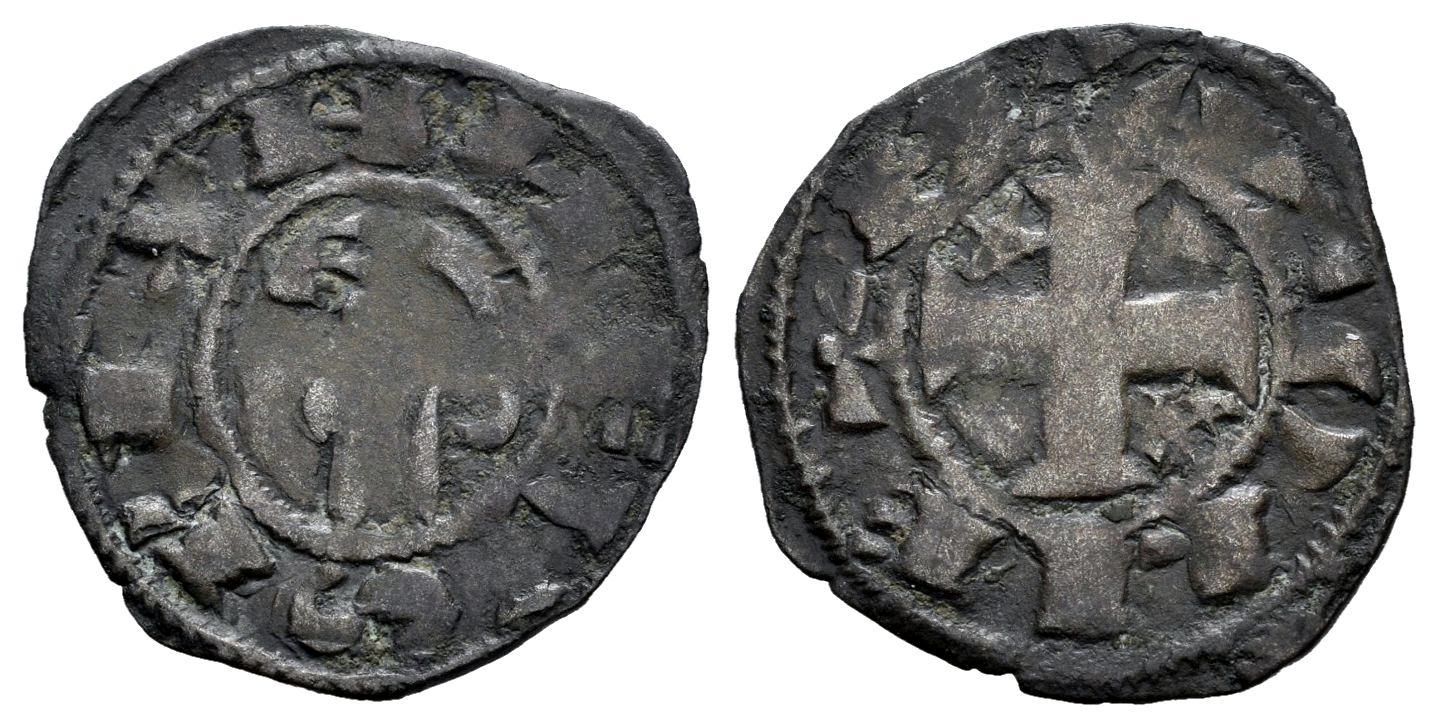 Reino de Castilla y León. Alfonso I (1109-1126). Dinero. Toledo. (Bautista-40). Anv.: AИFVS REX . Rev.: + TOLLETA. Ve. 0,80 g. Estrella en 1º y 4º cuartel. MBC. Est...25,00.
