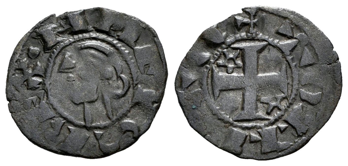 Reino de Castilla y León. Alfonso I (1109-1126). Dinero. Toledo. (Bautista-40.1). Anv.: • AИFVS REX. Rev.: + TOLLETA. Ve. 0,80 g. Estrella en el 1º y 4º cuartel. MBC+. Est...40,00.