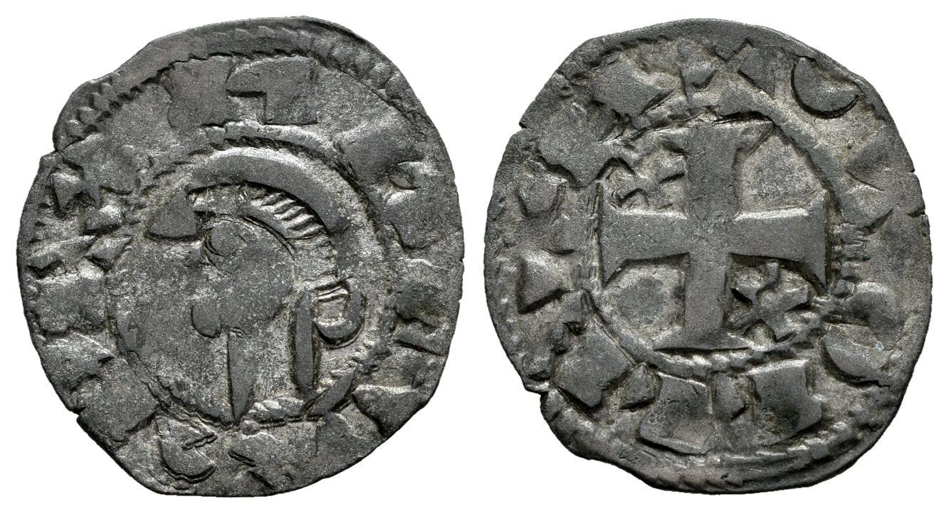 Reino de Castilla y León. Alfonso I (1109-1126). Dinero. Toledo. (Bautista-40.6). Anv.: AИFVS REX. Rev.: + (Creciente) TOLLETA. Ve. 0,93 g. Estrella en 1º y 4º cuartel. MBC+. Est...35,00.