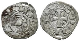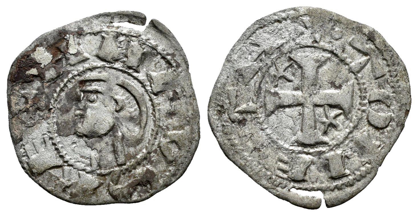 Reino de Castilla y León. Alfonso I (1109-1126). Dinero. Toledo. (Bautista-40.9). Anv.: ANFVS REX. Rev.: + ⠁TOLLE⠁TA. Ve. 0,72 g. Estrella en 1º y 4º cuartel. MBC. Est...25,00.
