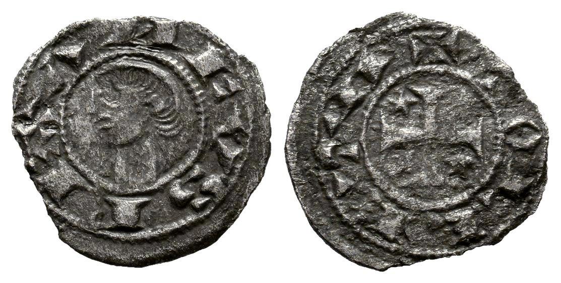 Reino de Castilla y León. Alfonso I (1109-1126). Óbolo. Toledo. (Bautista-41). Anv.: ANFVS REX. Rev.: + TOLLETA. Ve. 0,40 g. Otros autores la atribuyen a Alfonso VIII. MBC+/MBC-. Est...50,00.