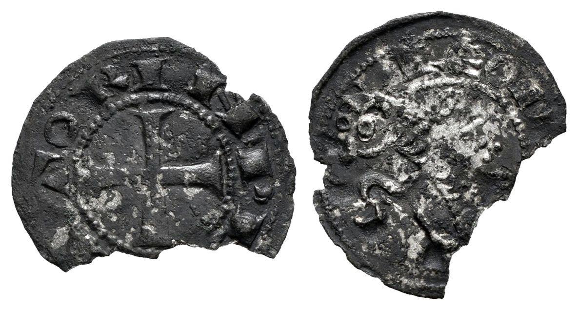 Reino de Castilla y León. Alfonso VII (1126-1157). Óbolo. León. (Bautista-120.2). (Imperatrix-A7:53.15). Ve. 0,25 g. Tres puntos debajo del león. Cospel faltado. Rara. BC+. Est...100,00.
