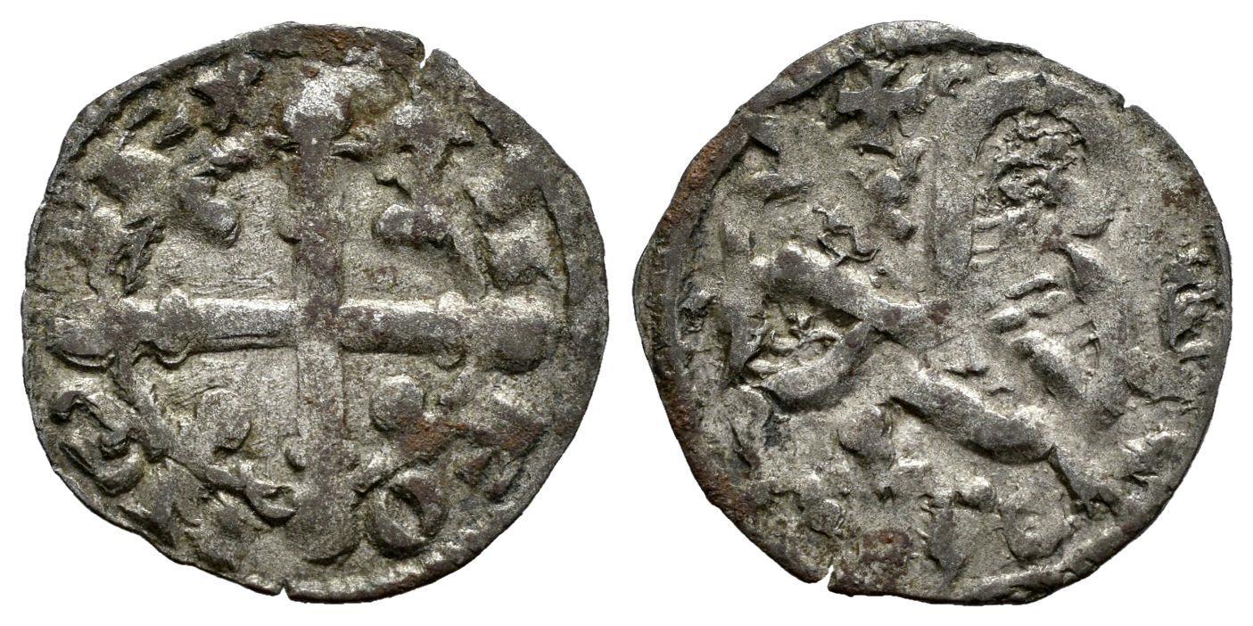 Reino de Castilla y León. Alfonso IX (1188-1230). Dinero. Marca de ceca: Estrella. (Bautista-223). Ve. 0,73 g. Suave pátina. MBC. Est...60,00.