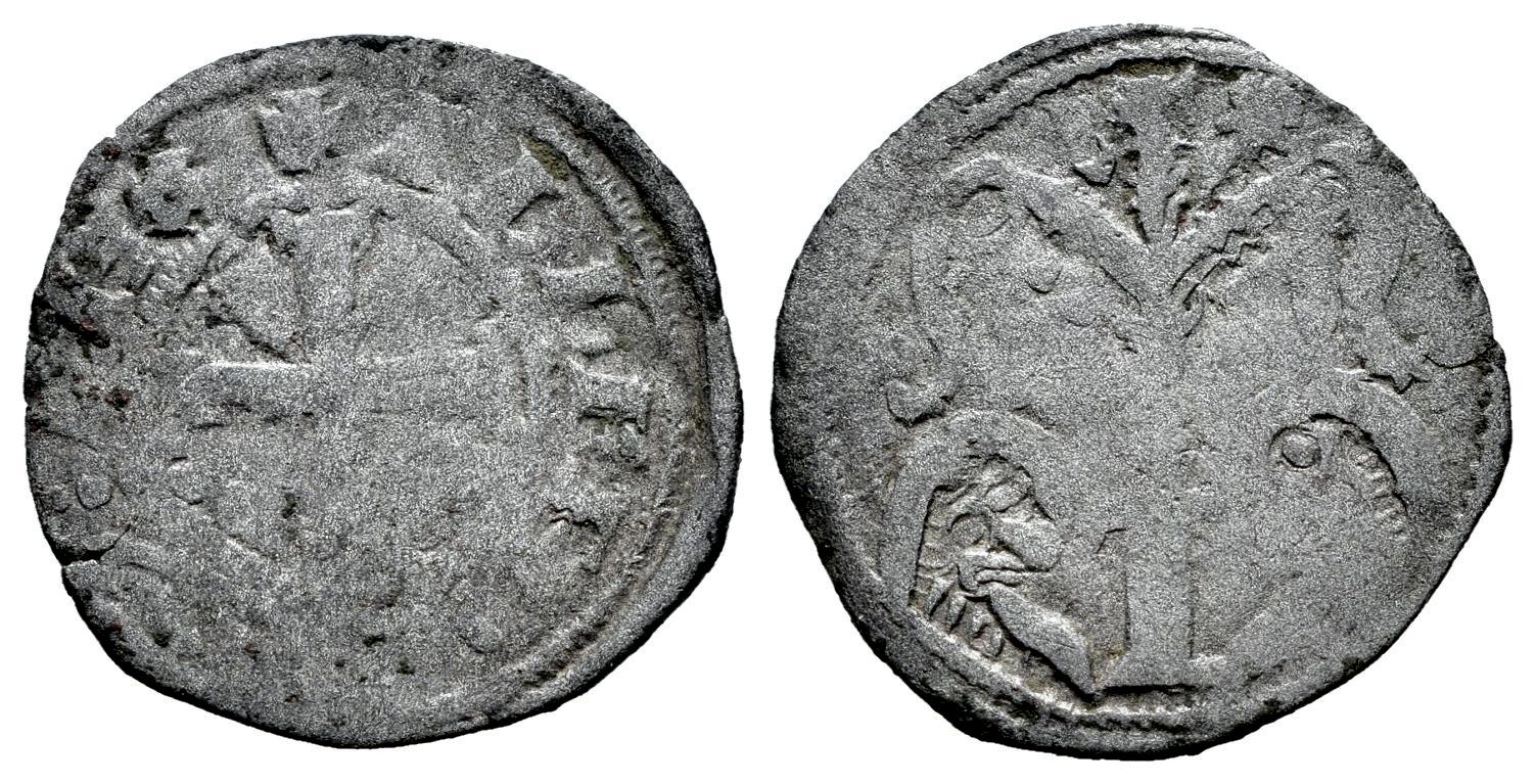 Reino de Castilla y León. Alfonso IX (1188-1230). Dinero. Santiago de Compostela. (Bautista-241.1). (Imperatrix-A9:1.3). Ve. 0,77 g. Creciente a la izquierda y venera a la derecha de la cruz. BC/BC+. Est...60,00.