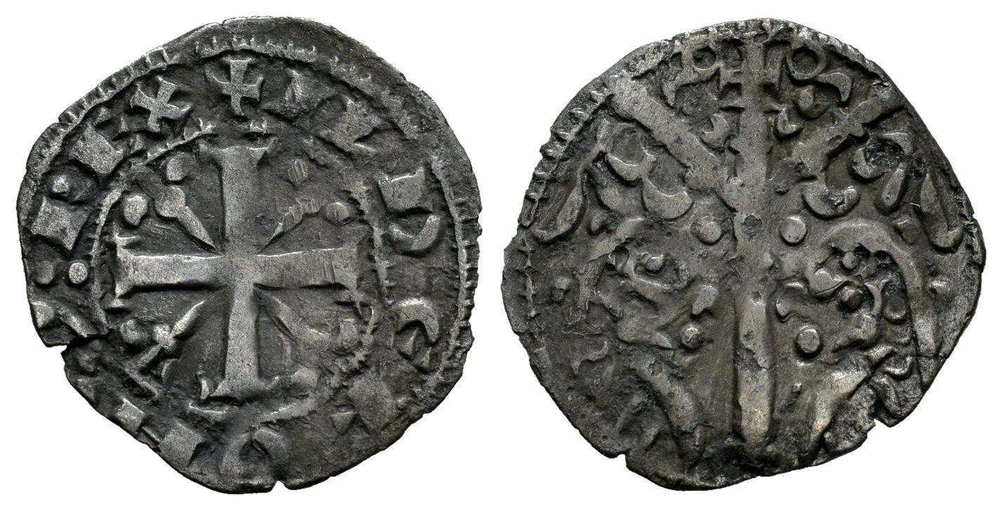 Reino de Castilla y León. Alfonso IX (1188-1230). Dinero. (Bautista-247). Ve. 0,67 g. Roeles a los lados de la cruz. Pátina. MBC+. Est...60,00.