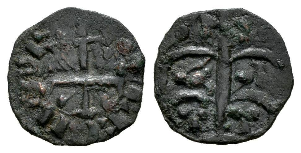 Reino de Castilla y León. Alfonso IX (1188-1230). Óbolo. (Bautista-No cita). (Imperatrix-A9:2.8, mismo ejemplar). Ve. 0,33 g. Falsa de época. Rara. Imperatrix A9:2.8, mismo ejemplar. MBC. Est...100,00.