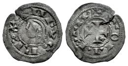 Reino de Castilla y León. Alfonso VIII (1158-1214). Óbolo. Toledo. (Bautista-No cita). (Imperatrix-A8:29.6, mismo ejemplar). Anv.: ANFVS RE º X. Rev.: + TOLLETAº. Ve. 0,47 g. Estrella en 1º y 4º cuartel. Grieta. Imperatrix A8:29.6, mismo ejemplar. EBC-. Est...50,00.